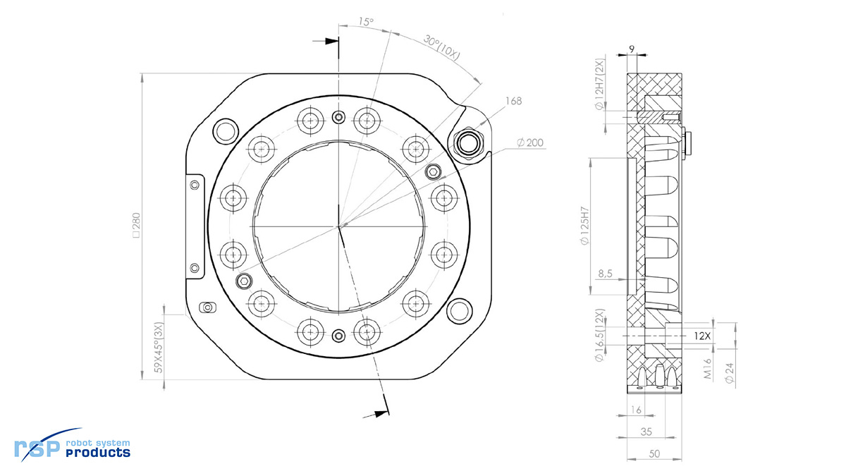 | Mechanical interface | ISO 9409-1-200-12-M16 |