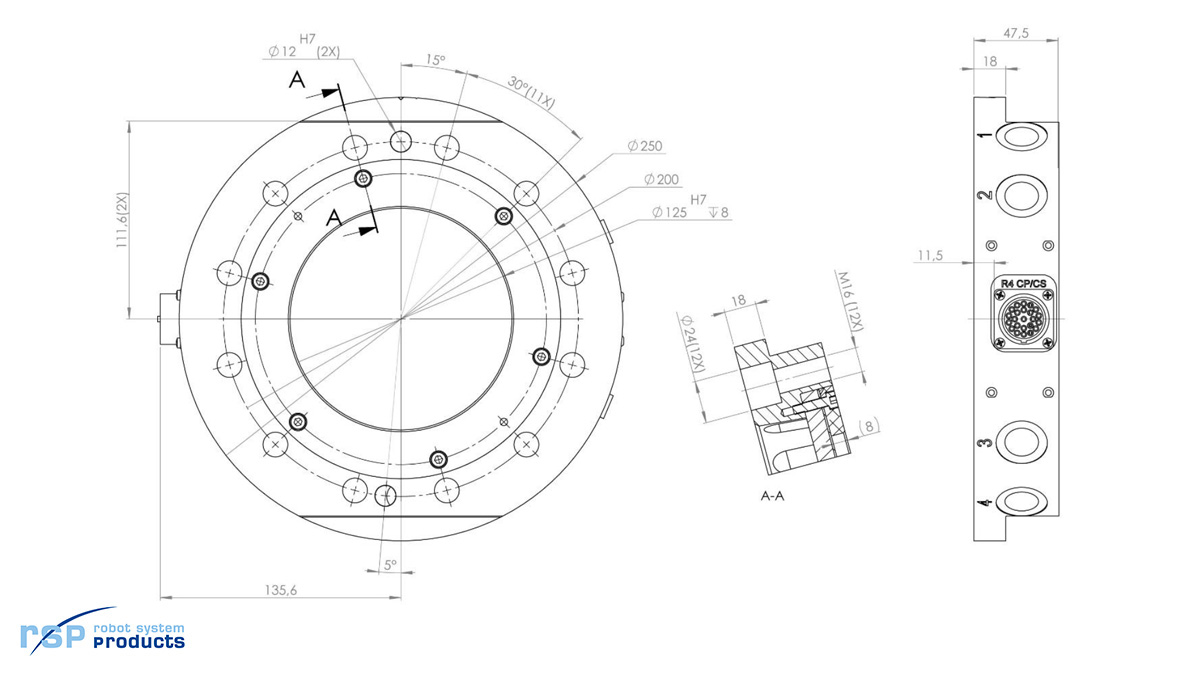 | Mechanical interface | ISO 9409-1-160-11-M12 |