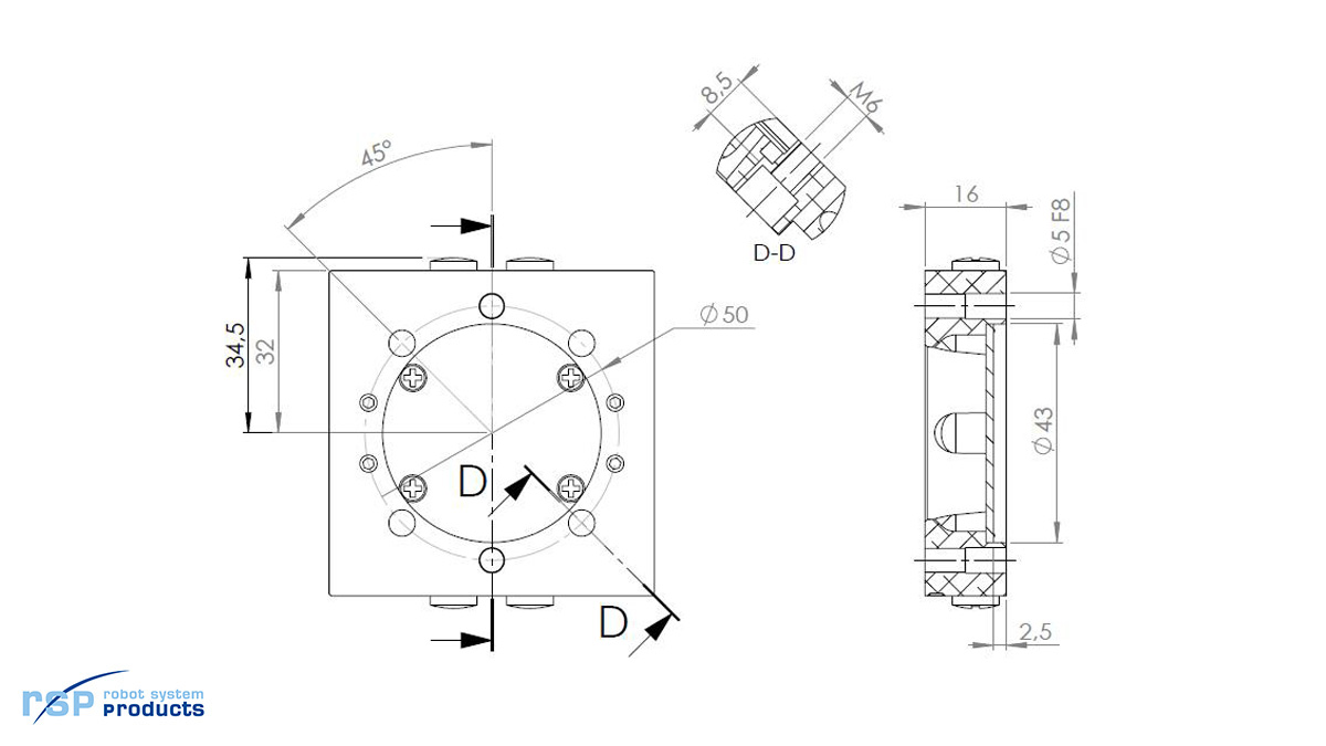 | Mechanical interface | ISO 9409-1-50-4-M6 |