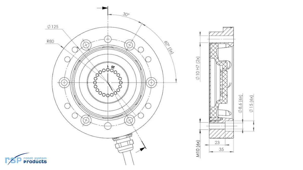 | Mechanical interface | ISO 9409-1-125-6-M10 |