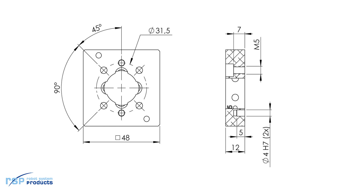 | Mechanical interface | ISO 9409-1-31.5-4-M5 |